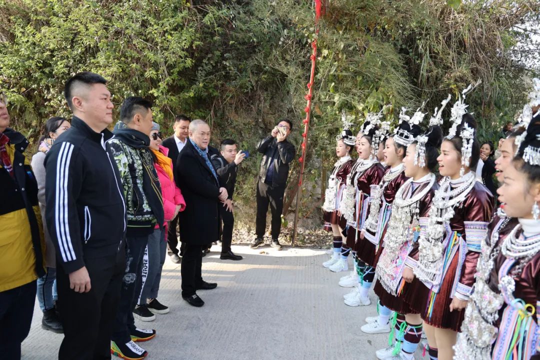 圖 | 當?shù)囟弊迦罕娨远闭Z唱山歌儀式歡迎博大董事會一行