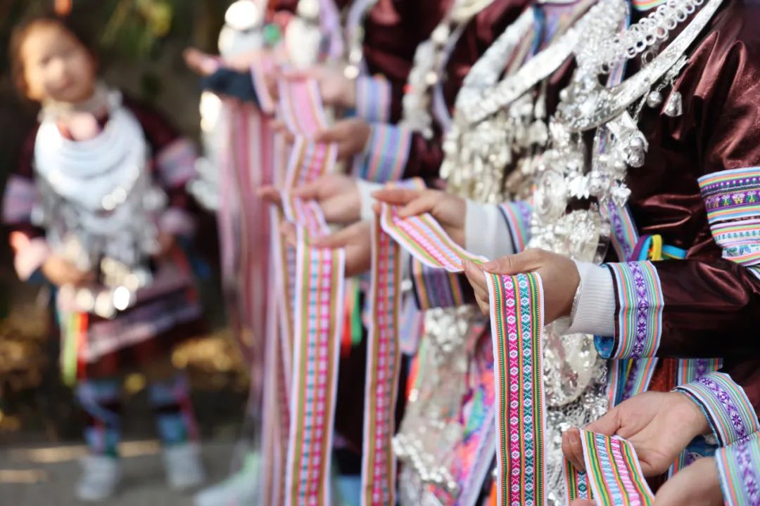 圖 | 當?shù)囟弊迦罕娊o客人送上民族獨有的寓意歡迎和祝福的彩帶