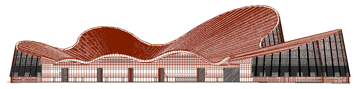 南通大劇院造型獨特,形似鋼琴、狀如紙鳶。幕墻建筑高度57m,分為玻璃幕墻系統(tǒng)、開放式石材幕墻系統(tǒng)、開縫鋁板幕墻系統(tǒng)、門窗系統(tǒng)、異形屋面系統(tǒng)等,幕墻及屋面總面積達(dá)到8.5萬㎡。