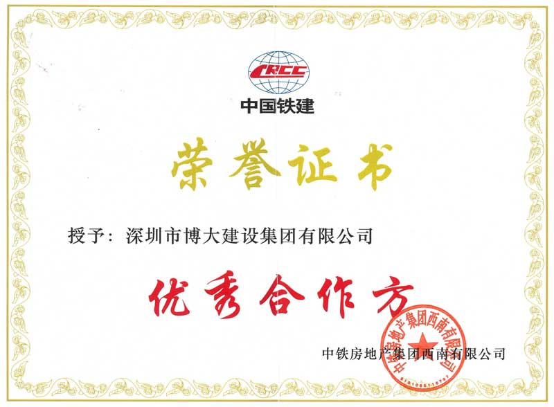 博大建設集團作為中國鐵建的長期合作伙伴,已連續(xù)數年榮獲“優(yōu)秀合作方”稱號。
