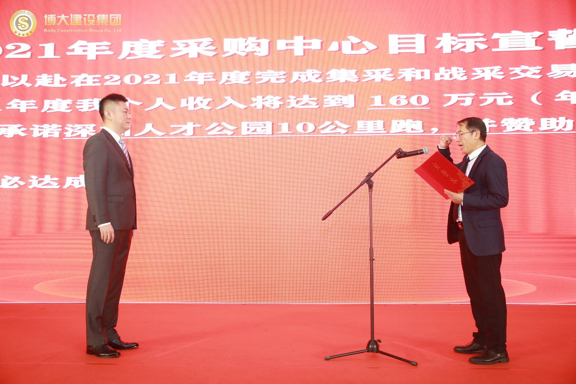 各戰(zhàn)區(qū)、中心、工廠負(fù)責(zé)人逐一上臺(tái),在全體合伙人的見(jiàn)證下對(duì)2021年的部門(mén)目標(biāo)和個(gè)人收入目標(biāo)莊嚴(yán)宣誓,洪董代表集團(tuán)對(duì)股東宣誓!