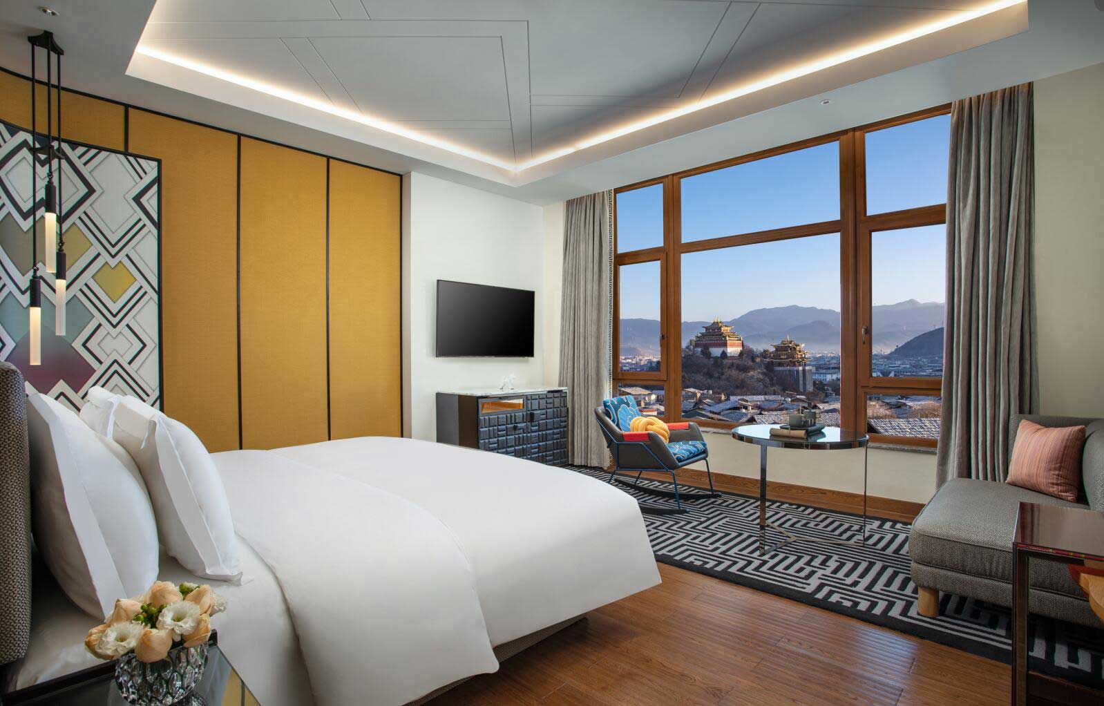 房間設(shè)計(jì)從藏地文化中汲取靈感,寫意回溯香格里拉鄰間故事,打造兼具民族風(fēng)韻和現(xiàn)代舒適的下榻空間,點(diǎn)綴精挑細(xì)選的工藝品及特色壁畫,房間的角落和細(xì)節(jié)處處可見(jiàn)充滿本地風(fēng)情的鄰間文化。開(kāi)窗見(jiàn)景,入室賞藝,高品質(zhì)客房設(shè)施營(yíng)造了引人入勝的旅居氛圍。